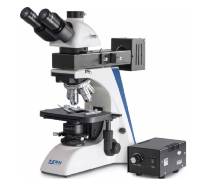 Gama de microscopios con la óptica por debajo de la mesa portamuestras que al ir fija en el estativo puede soportar muestras de grandes dimensiones y peso y de una única cara pulida, incorpora objetivos Plan Apocromáticos corregidos al infinito entre 5X y 100X iluminación halógena de 12V/50W reflejada y también incluye filtro analizador y polarizador |